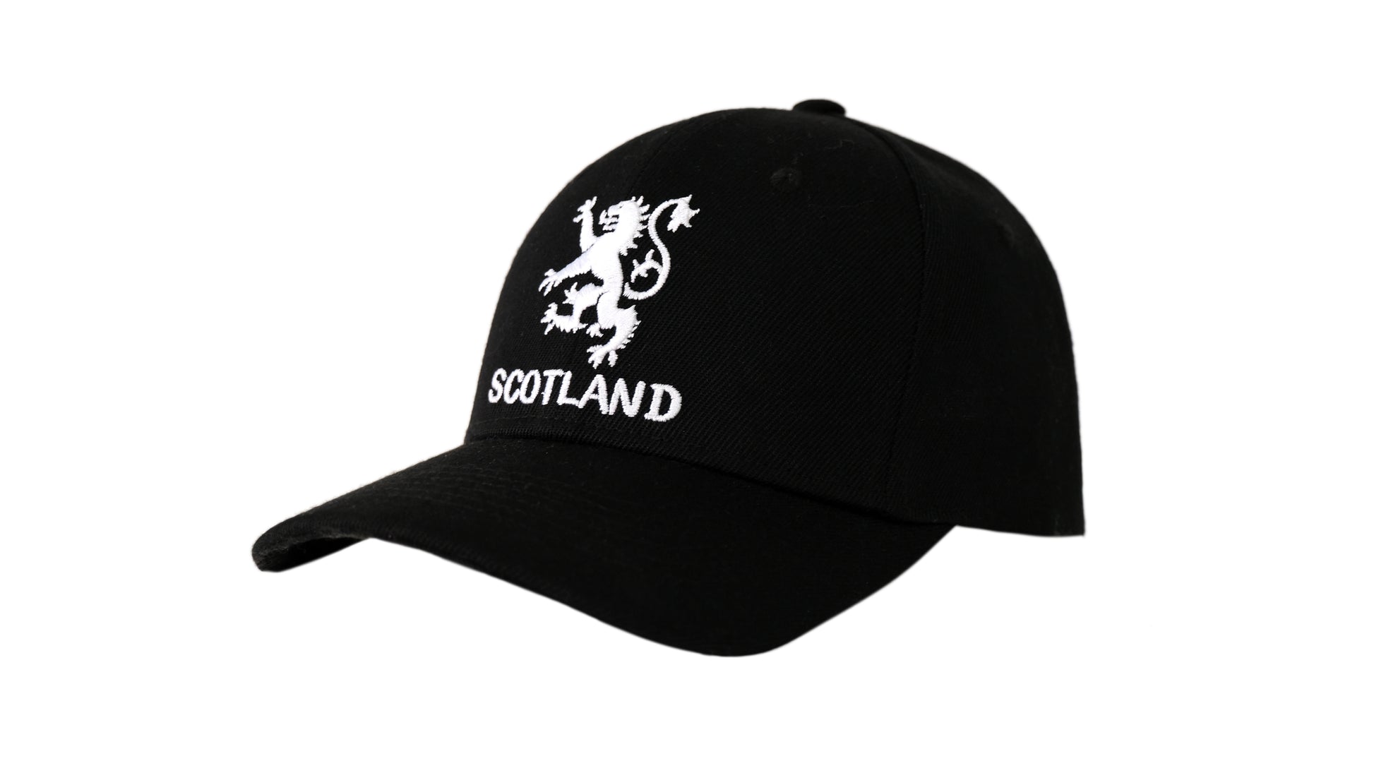 Baseball Cap in a range of colours with stitched on Rampant Lion with Scotland underneath it.